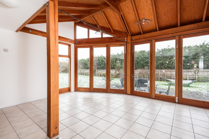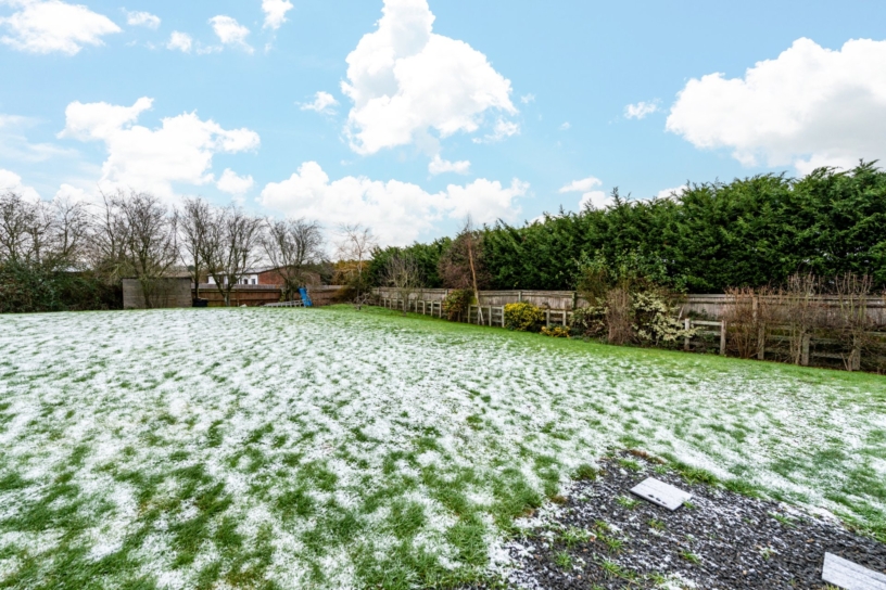 The property is situated in a cul-de-sac position with parking for three cars ahead of the two garages, one of which can be accessed from the utility room and both of which have personnel doors at the rear. The plot is approximately 0.31 acres with lawned gardens to the side and rear and a slate chippings patio outside the garden and dining rooms. The house backs onto paddock land and there are country views especially from the first floor. The garden has wooden fenced and mature hedged borders providing privacy.