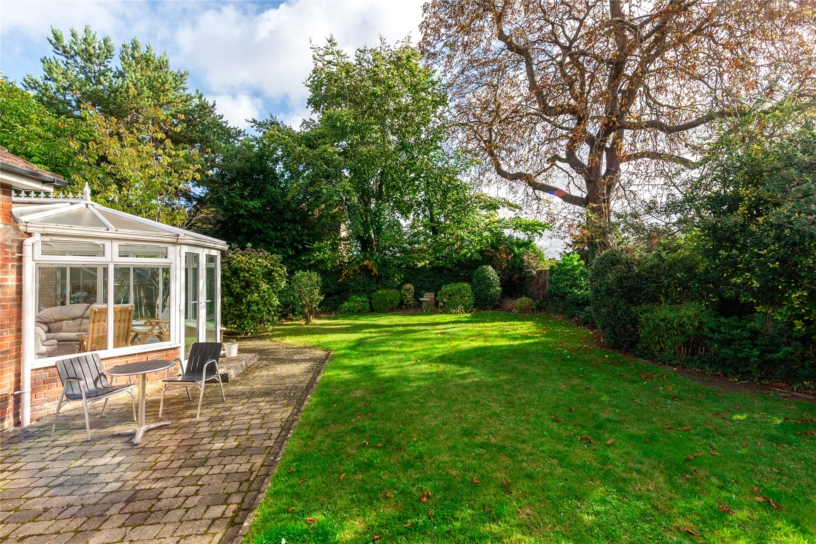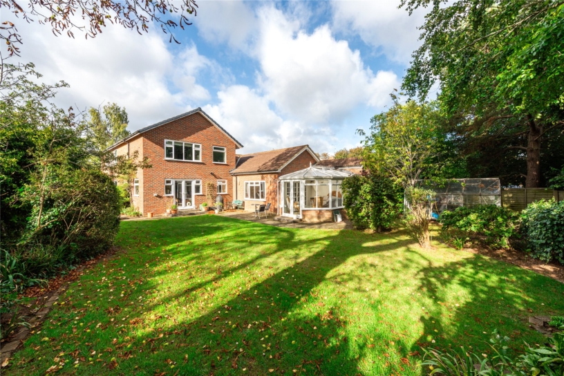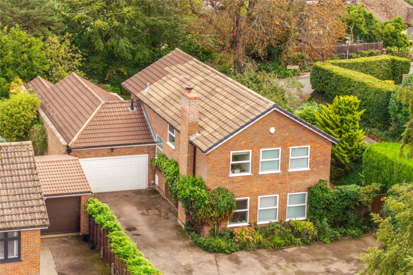 Built in the 1970s, the property and has been extended to offer accommodation of over 2,400 sq. ft. set over two floors. On the ground floor an entrance hall with a cloakroom accesses a sitting room, a study, and the kitchen/dining room with a ceramic hob, an oven and space for an American style fridge/freezer. A utility area has matching units and work surfaces, a one-and-a-half bowl sink, and space and plumbing for a washing machine. Accessed from the kitchen are the family room, a conservatory, and an adjacent room which could be converted to a ground floor shower room. On the first floor there are four bedrooms and two bathrooms, one of which is en suite to the principal bedroom, which also has a dressing room. At the front of the house is a lawn and a driveway offering parking for up to six cars along with access to the double garage. The rear garden is laid to lawn and has a wraparound patio and a greenhouse. A side gate leads to the front drive.