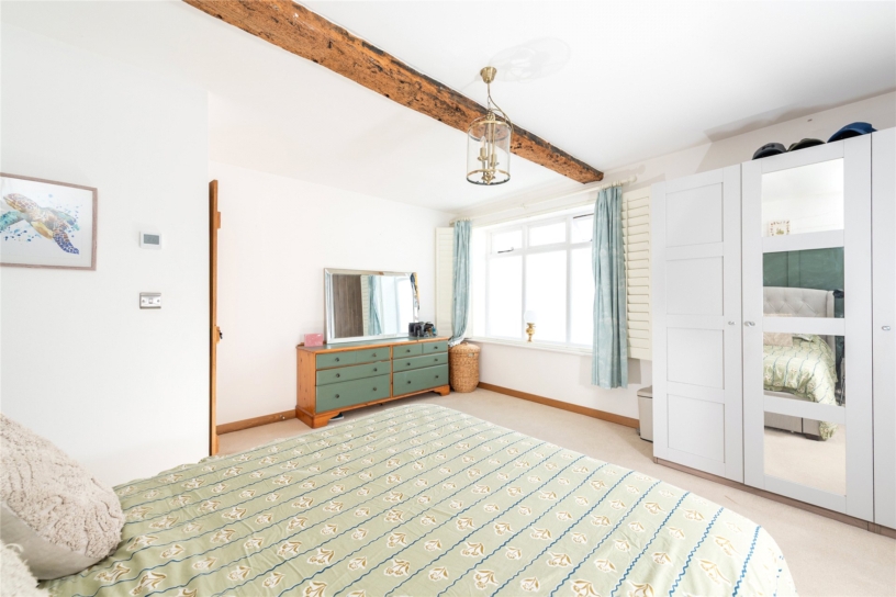 All four of the bedrooms feature original exposed beams. One of the bedrooms has a door to the rear garden and an en suite wet-room with a walk-in shower, a low-level WC, and a wash basin. The family bathroom has a bath with a shower over, a WC, and a vanity wash basin. Both of which have been recently replaced.