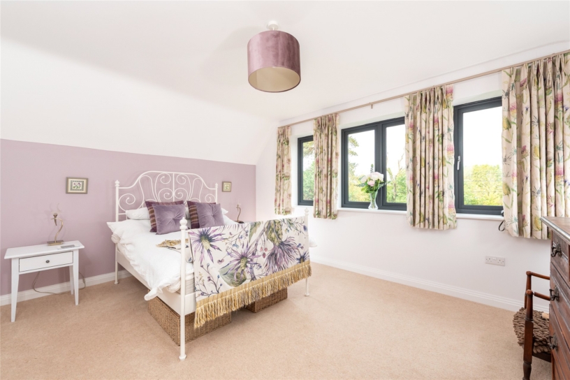 There is an alternative suite which could also be used as the principal bedroom if preferred. It has a triple window to the front, a dressing room with access to eaves storage, and an en suite shower room. Neither of the dressing rooms has any fitted furniture allowing purchasers to complete the rooms to their own personal requirements.