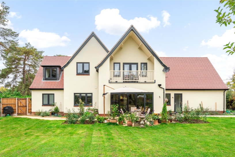 There is access on both sides of the house to the rear garden which is enclosed by mature hedges on either side. There is a paved terrace spanning the rear of the house with space for a table and chairs and seating for al fresco dining and entertaining, and the rest of the garden is lawned with a nature pond, mature trees interspersed and mature beds and borders which have been planted to provide interest and colour throughout the year, and to encourage wildlife. There is a timber garden machinery store which houses a ride on mower which is available subject to separate negotiation if desired.
