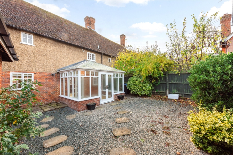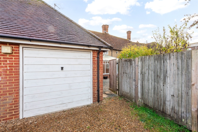 The first floor has two double bedrooms and a fitted bathroom with exposed beams and exposed brickwork in the fireplaces. The front garden is laid to lawn with gated access to a side patio and an enclosed rear garden. There is a pedestrian gate to the parking area where the property has two car parking spaces and a single garage. The access to the garage and parking is between 12 and 14 High Street.