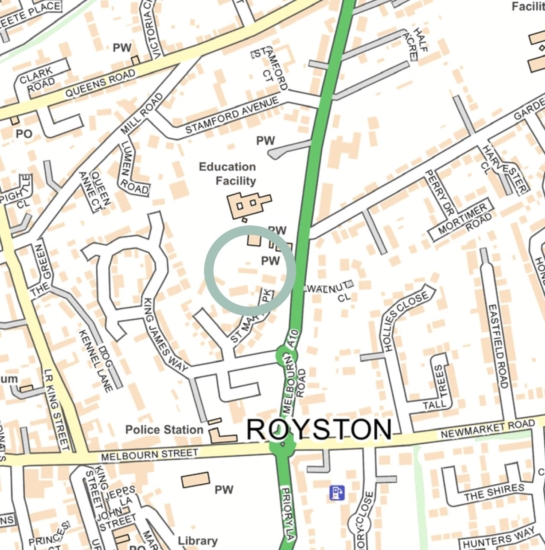Royston is a market town in North Hertfordshire set in scenic countryside near the Cambridgeshire border. It has a wide range of amenities including independent shops, supermarkets, pubs, cafés, a leisure centre, a library, and several parks including the Priory Memorial Gardens in the centre of town and Therfield Heath which is a short walk from the town centre and has views over the surrounding countryside. The Icknield Way Trail also passes through the town.