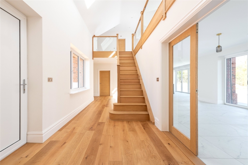 The cinema room, measuring over 19 ft. by 16 ft. is dual aspect with windows to the front and side and inset ceiling lights. The over 13 ft. square study/snug, which could be repurposed as bedroom five, has windows to the side garden area. Both rooms lead off the entrance hall.