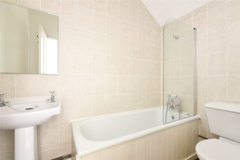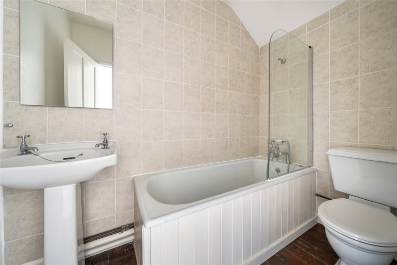 The first floor landing has access to the loft via a hatch. The principal bedroom, over 14 ft. sq., has a window to the rear aspect overlooking the garden. Both the bedrooms two and three have the original cast iron fire places. Bedroom two also has a storage cupboard and a built-in wardrobe. The family bathroom with partially tiled walls has a side panel bath with a shower over, a low level WC, and a wash hand basin.