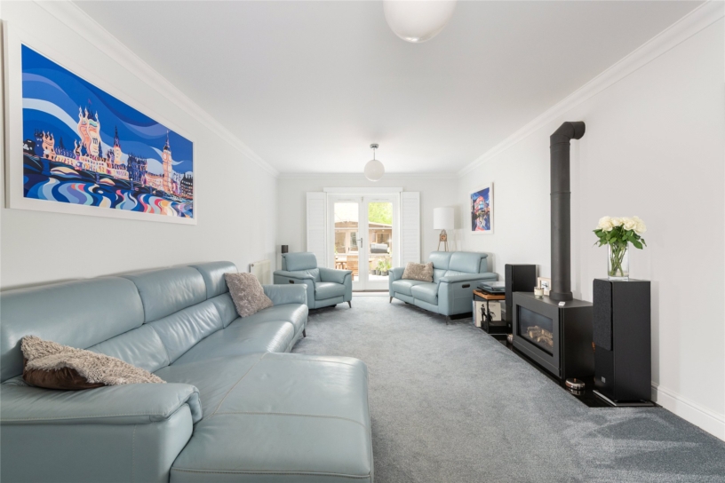 • Sitting room with French doors and a feature fire