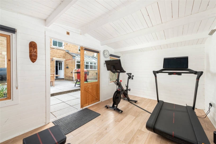 A modern five bedroom detached house with a double garage, driveway parking, and a garden gym/studio set in the enclosed rear garden, located on the popular Fairfield Park development.