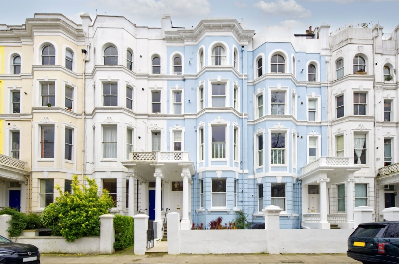 A refurbished one-bedroom apartment on the raised ground floor of a stucco-fronted Victorian conversion in Notting Hill W11.