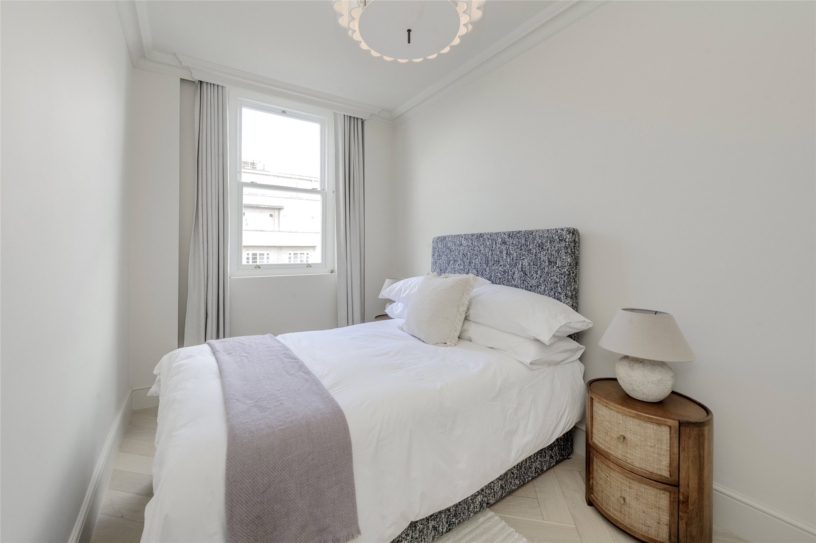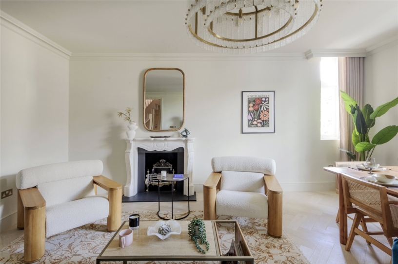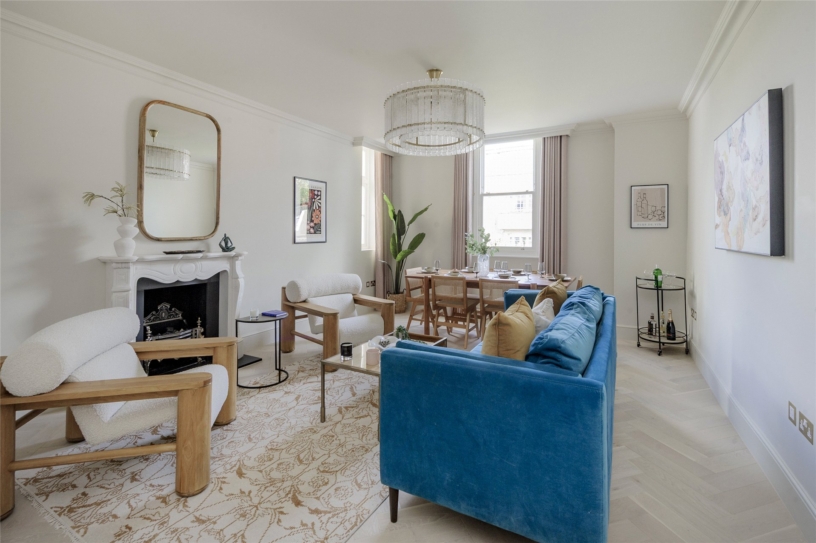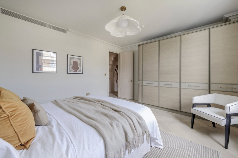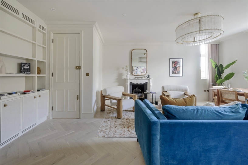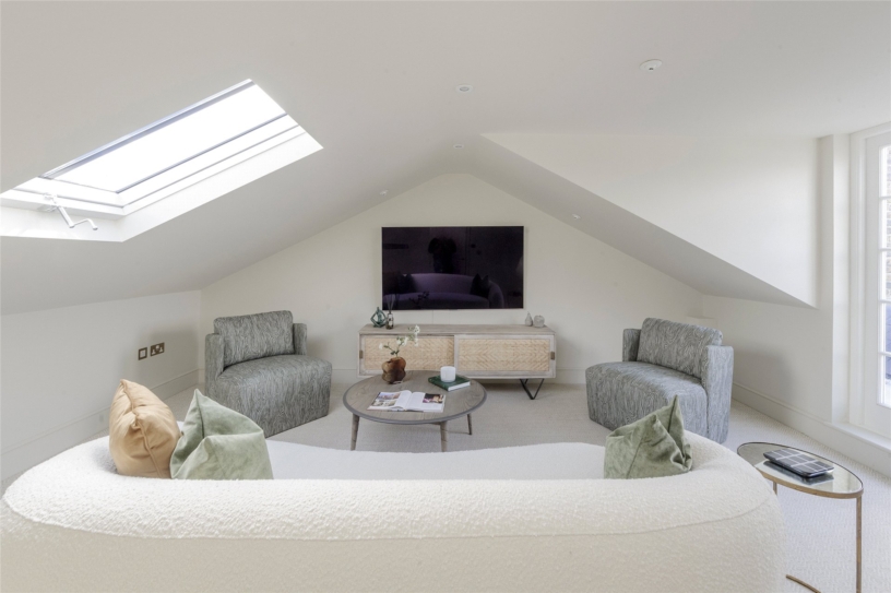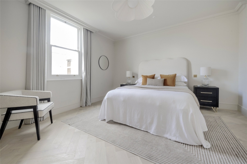 The developer has undertaken a comprehensive renovation of the property, paying careful attention to detail, and successfully blending original heritage features with contemporary styling. The apartment has an east/west orientation for natural light and is accessed via a private lift. Spanning the top two floors of the building it has over 2,070 sq. ft. of accommodation including three double bedrooms, two bathrooms, an open plan reception/dining room, a kitchen and access to two private terraces. The apartment benefits from underfloor heating throughout, air conditioning, double-glazed sash windows and bespoke designer wardrobes. Residents of the building may apply for access to the communal gardens at Pembridge Square. A parking permit for on-street parking may also be obtained through RBKC council.
