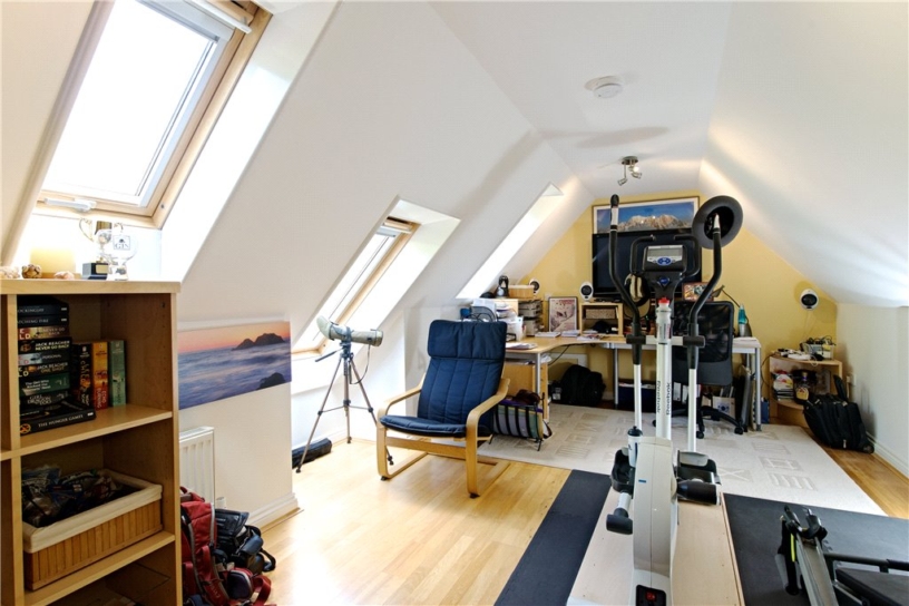 The master bedroom has a dressing room with fitted wardrobes, and an en suite with a corner bath and twin wash basins. Bedroom two has an en suite shower room, while bedroom three has French doors to a balcony. The second floor landing also has French doors to a Juliet balcony. Bedroom six has a walk through space which is currently in use as a playroom and has access to a store room. Bedroom seven is in use as a gym/study.