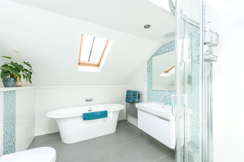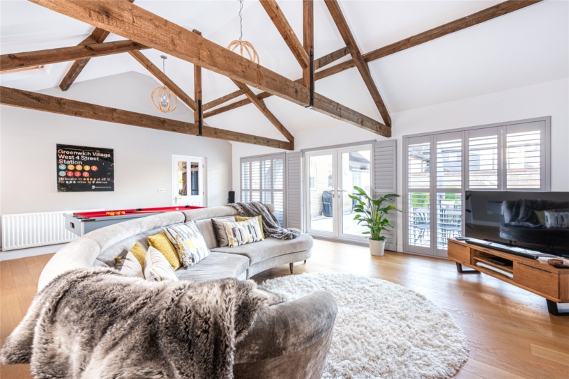 The property has approximately 2,638 sq. ft. of accommodation over two floors. On the ground floor an entrance hall has a cloakroom, stairs to the first floor with a cupboard under, and access to the garage. Doors lead to an open plan kitchen/breakfast room, a sitting room with a brick fireplace with a lintel over and an inset woodburning stove, an office with a window to the side, and a games room which has a vaulted ceiling with exposed beams and skylight windows and French doors to the garden. On the first floor, the open plan landing area has a skylight window, an airing cupboard and access to the loft area. There are four double bedrooms, all with built-in wardrobes. The principal bedroom and bedroom two each have an en suite shower or bath room, and the family bathroom has a freestanding modern roll top bath with a shower cubicle, a wash basin, and a WC. There are enclosed landscaped gardens to the rear and off street parking for four/five cars ahead of the double garage.