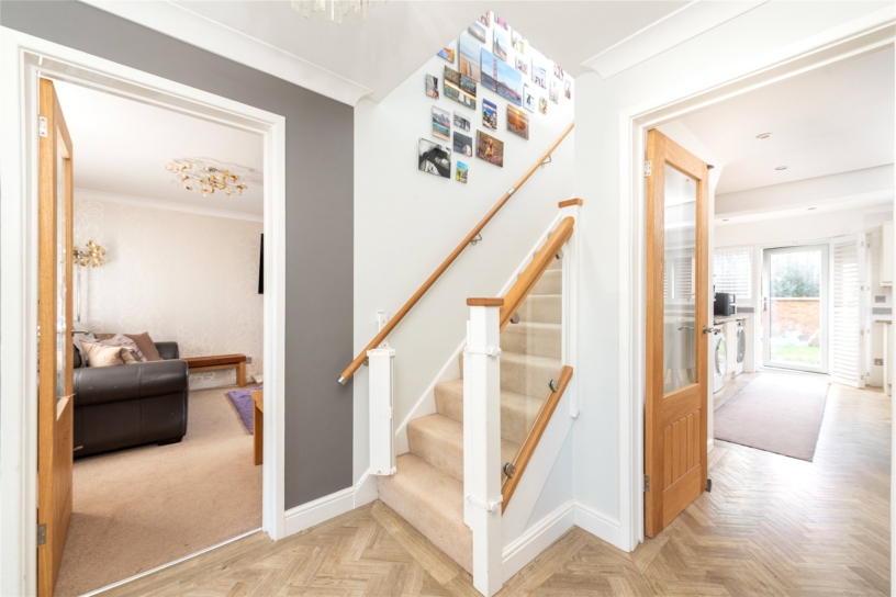 This extended property has approximately 1,681 sq. ft. of accommodation over two floors which includes an entrance porch and inner hall which has a cloakroom, stairs to the first floor, and an archway opening to the dining room which is currently used as a playroom. The dual aspect sitting room measures over 18 ft. and has a feature fireplace with a coal effect fire, a canted box bay window to the front and glazed aluminium bi-fold doors to the rear decking. Also on the ground floor is the kitchen/breakfast room and a triple aspect office which was converted from the garage. The first floor landing has a storage cupboard and access to the loft space. The principal bedroom has a fitted wardrobe, an en suite shower room and air conditioning installed. There are three further bedrooms and a fully tiled four piece bathroom with a WC and washbasin set into vanity storage, a bath, and a separate shower.