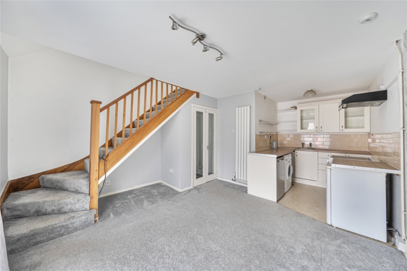 The property has an open plan kitchen/sitting/dining room with stairs to the first floor where there is a double size bedroom and a shower room Outside there is a lawned area to the front and a low maintenance garden to the rear with parking for two cars to the side of the property. Available now.