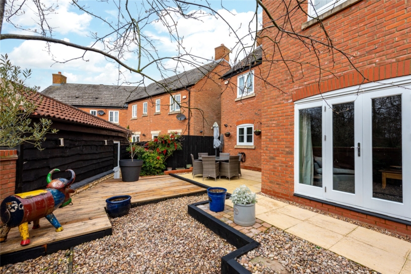 A modern four bedroom detached double fronted property with a detached garage, parking for two cars and an enclosed rear garden overlooking Ouzel Valley Park.