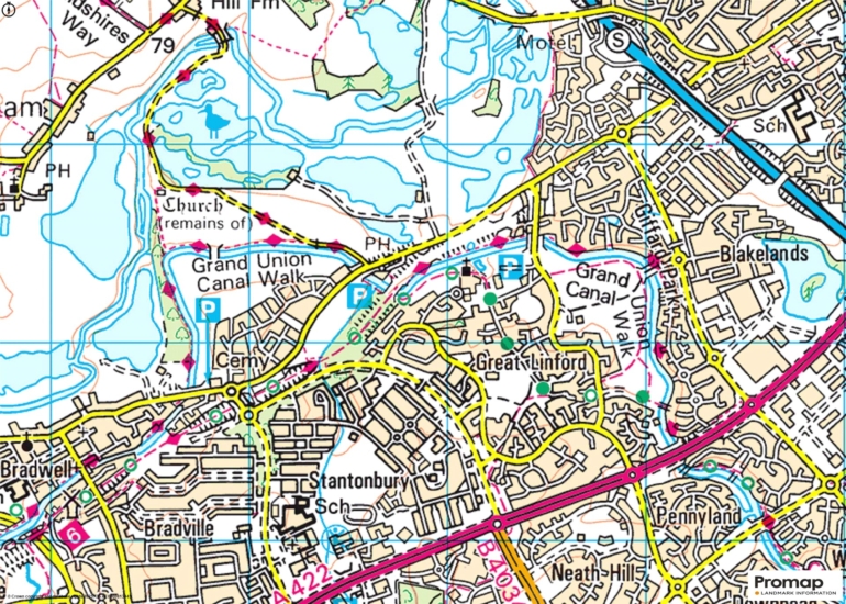 Great Linford has a selection of shops, and a public house. The old village has the historic Manor House, an arts centre, a church, village hall, a cricket ground, and Marsh Drive community and sports centre. Central Milton Keynes, with its shopping centre and other amenities, is approximately 2 miles away.