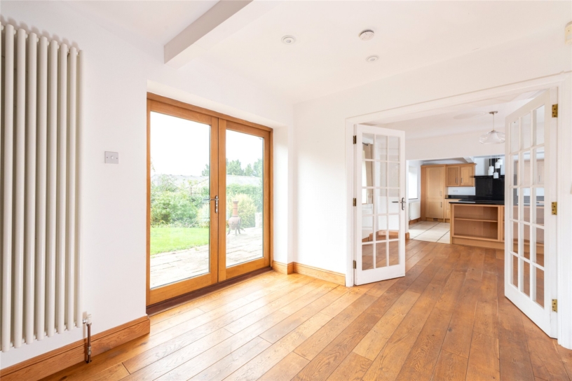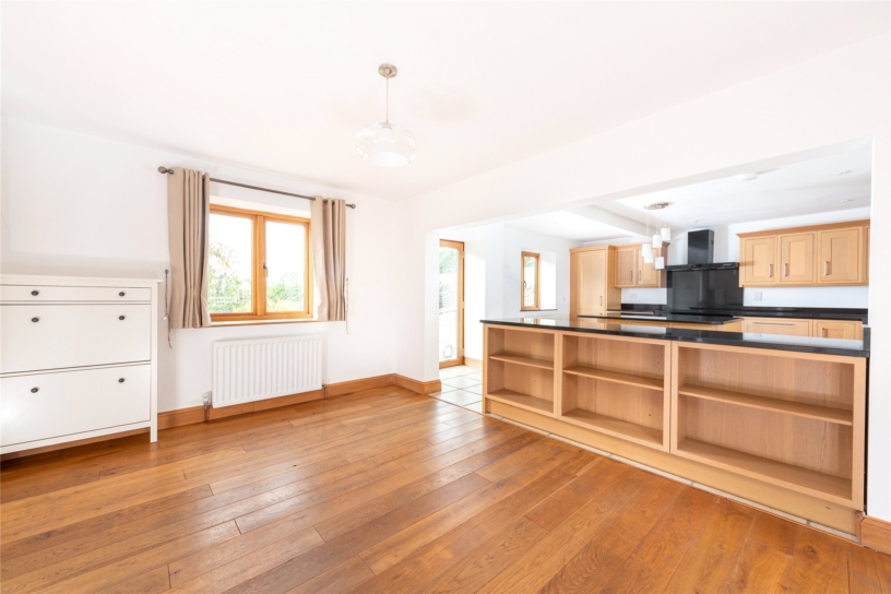 The Old Barns is a double barn conversion located in the enclave of Long Street in Hanslope. The 2,080 sq. ft. of accommodation includes a dual aspect sitting room with a feature wood burning stove, and double doors to the rear garden, and a dual aspect dining room which is open plan to the kitchen/breakfast room. Also on the ground floor is a utility room, and a cloakroom. On the first floor there is a principal bedroom with an en suite shower room, three further bedrooms, one with built-in wardrobes, and a main bathroom which has a panelled bat with a shower attachment, a pedestal wash basin, a WC, a heated towel rail, and a Velux window.