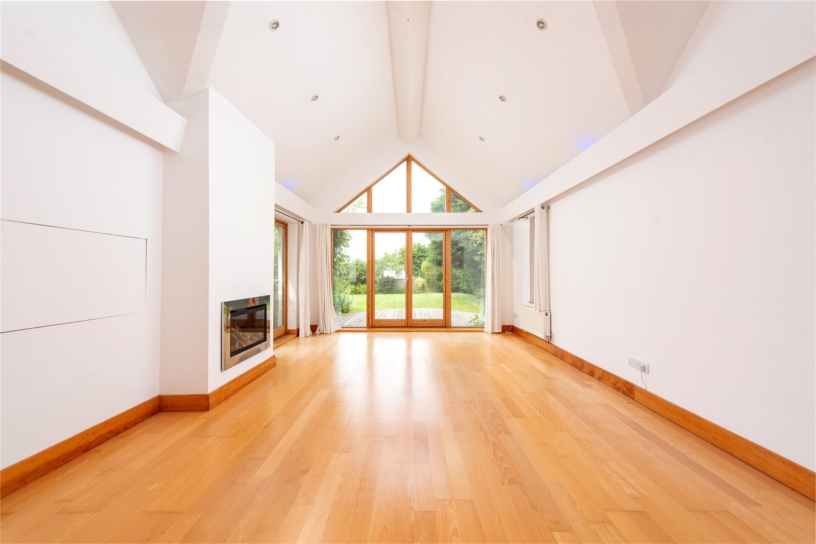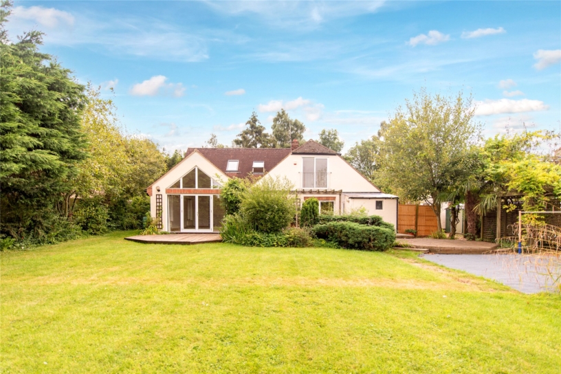 The versatile accommodation includes a sitting room with two sets of double doors and a vaulted ceiling, an open plan family/dining room with double doors to the garden, and a study. Also on the ground floor is a study, a fitted kitchen with built-in appliances, a utility room, a cloakroom and a downstairs bedroom with fitted wardrobes. On the first floor there is a principal bedroom with an en suite and balcony, three further double bedrooms, and a main four piece bathroom. There is a large rear garden, a garage and parking. The property is unfurnished, available early December 2025.