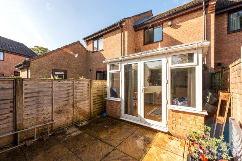 A two bedroom terrace property with a fitted kitchen, a conservatory, enclosed rear garden and parking, situated in the village of Cranfield.