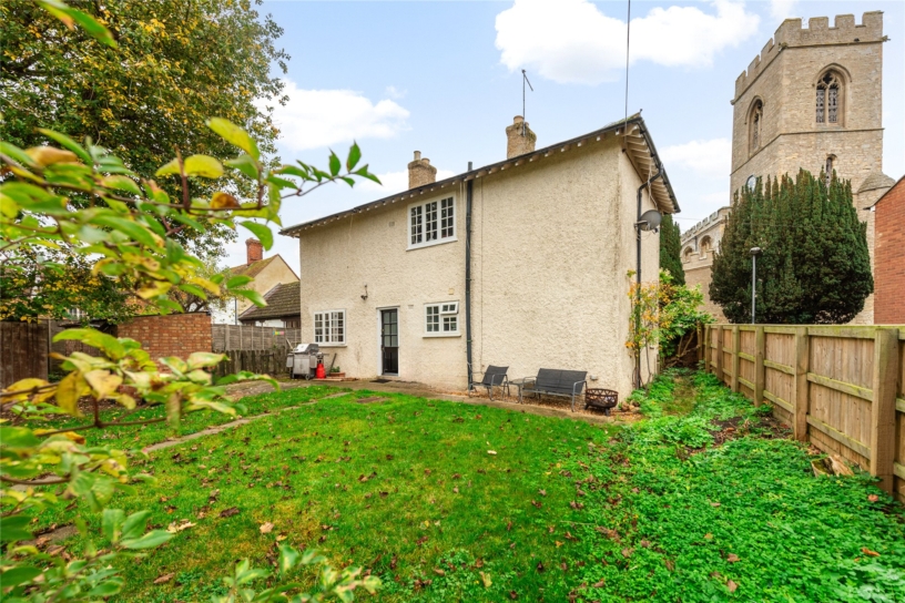 The front garden has a brick wall boundary with gated access, and tree and shrub borders. The enclosed rear garden has views over the village church, and is laid mainly to lawn with tree and shrub borders, a brick built outbuilding and store, and a path to gated access to the off street parking at the rear which has vehicle access via a side road off Folly Lane.