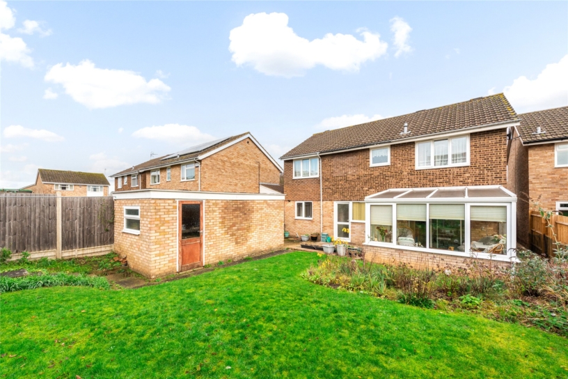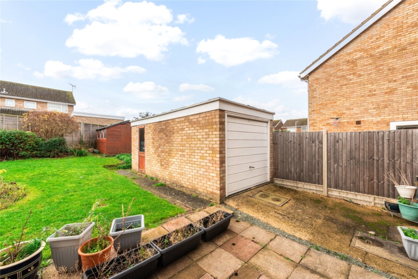 The front garden has a block paved driveway providing off street parking for two cars leading to the garage with an up and over door, and a door to the utility room. The enclosed rear garden has a paved patio area leading to the lawn garden with shrub borders, and a brick built single garage for storage only as not accessible for a car.