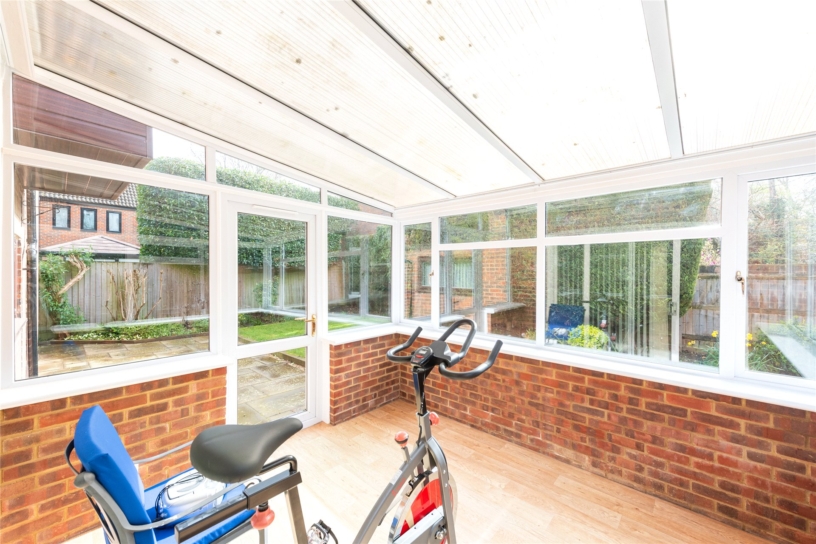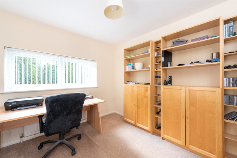 The accommodation includes a dual aspect sitting room with a feature stone fireplace and sliding patio doors to the garden, a study, and a dining room with sliding patio doors to the uPVC double glazed conservatory which has a door to the garden. Also on the ground floor is a fitted kitchen with an adjoining utility room which has a door to the rear garden, and an entrance hall, a cloakroom and with stairs to the first floor. On the first floor the principal bedroom has a range of built-in wardrobes, and an en suite shower room. There are three further bedrooms, two with built-in wardrobes, and a main bathroom. The property has double glazing and gas to radiator heating.