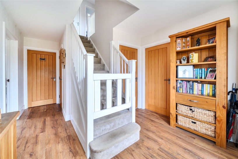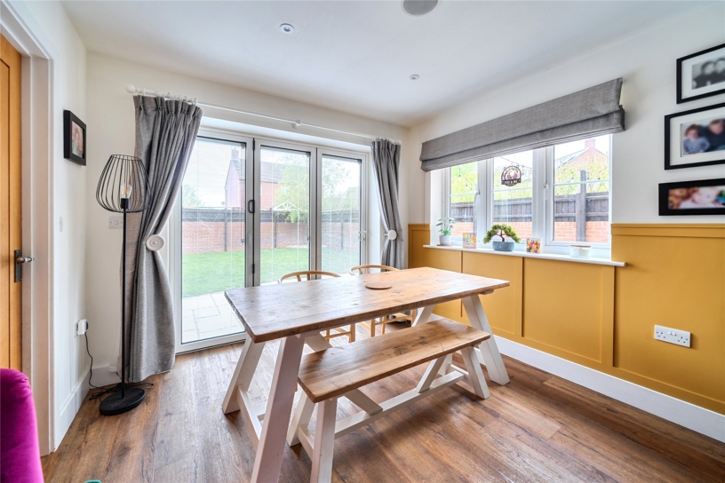 A contemporary five bedroom detached property with two en suite shower rooms, three reception rooms, private driveway parking, and a double garage currently utilised as a private gym, all set within the village of Hartwell