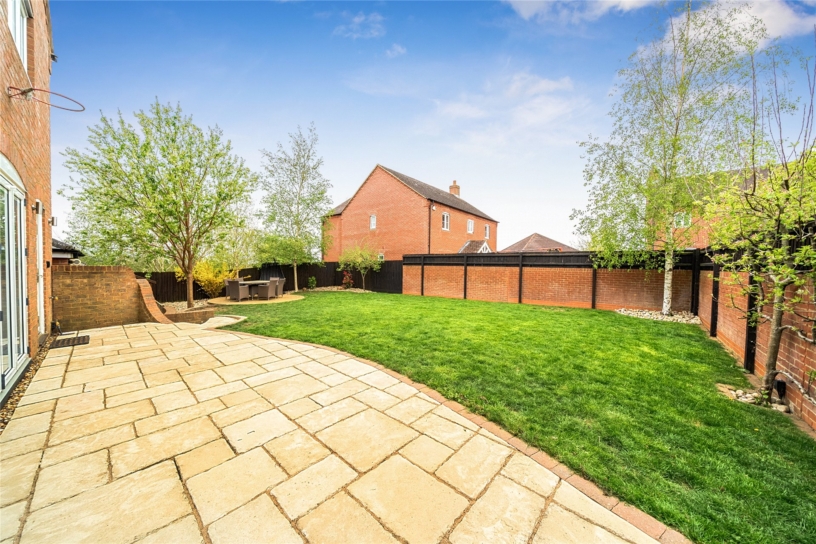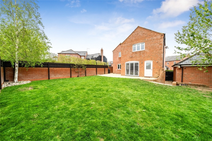 There is an EV charging point on the side of the house, and a block paved driveway which provides off street parking for four cars leading to the double garage which has been partly converted to create a store at the front and a gym at the rear but could easily be restored to a double garage if preferred. Gated access leads to the landscaped rear garden which has a paved patio which continues to the side, and a further circular paved seating area. Steps down lead to a shed and a door to the garage/gym. The remainder of the garden is laid to lawn with pebbled shrub and tree beds.