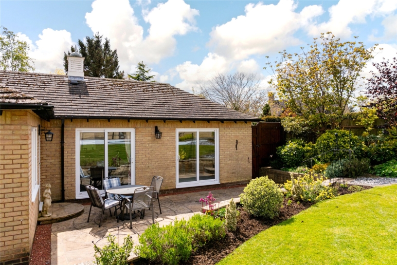 The detached single storey annexe can be accessed via The Paddocks or via the rear garden. It has a dual aspect sitting room with patio doors to the terrace, and a fitted kitchen/ breakfast room with integral dishwasher, fridge/freezer, oven and microwave. The principal bedroom has fitted wardrobes and door to an en suite shower room. There is a further bedroom, a cloakroom, and a terrace area in the garden with raised flower borders.