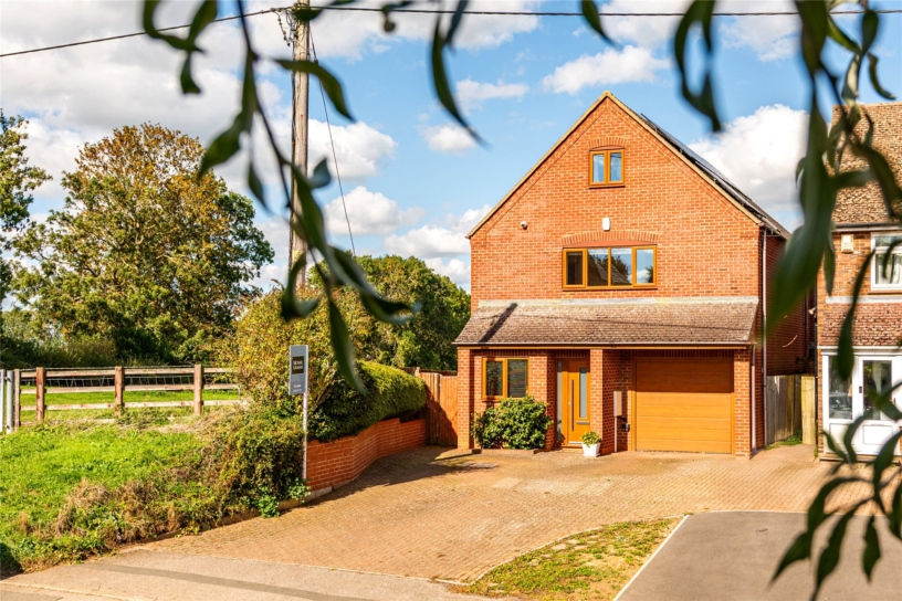 An individually built four bedroom detached property set over three floors with driveway parking, an integral garage and a rear garden with far reaching countryside views, for sale with no upper chain.