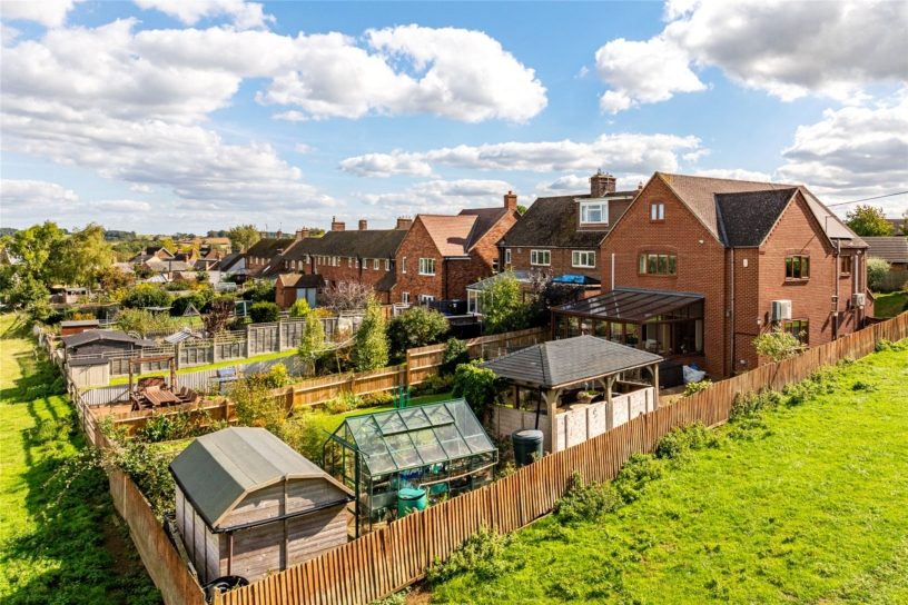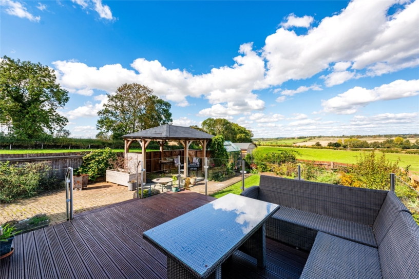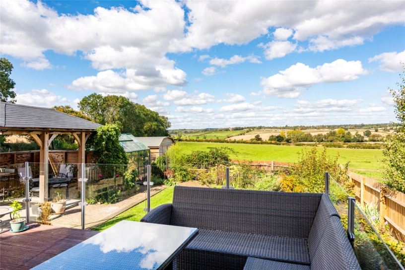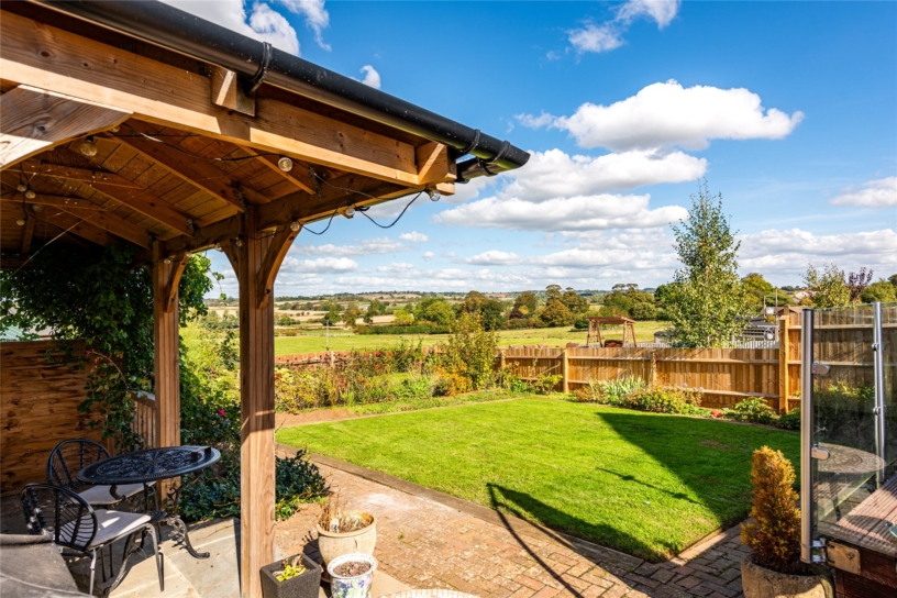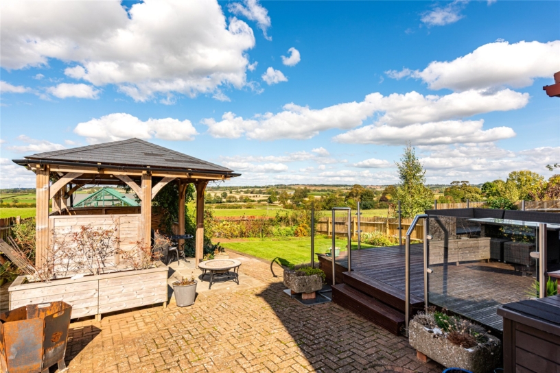 The rear garden has a raised decked seating area outside the conservatory with far reaching countryside views. The paved patio extends the side of the property and leads to a timber built barbecue/entertaining area. The remainder of the garden is laid to lawn with established flower and shrub borders and a railway sleeper vegetable garden. There is a shed, greenhouse, a tap, and lighting.