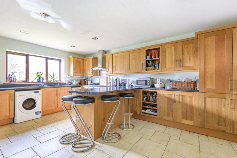 The kitchen/breakfast room has a range of base and wall units with worksurfaces and upstands over. There is space and plumbing for a washing machine and slimline dishwasher as well as a built-in electric hob and oven with extractor canopy over. There is a built-in breakfast bar as well as space for a six seater dining table and freestanding fridge freezer.