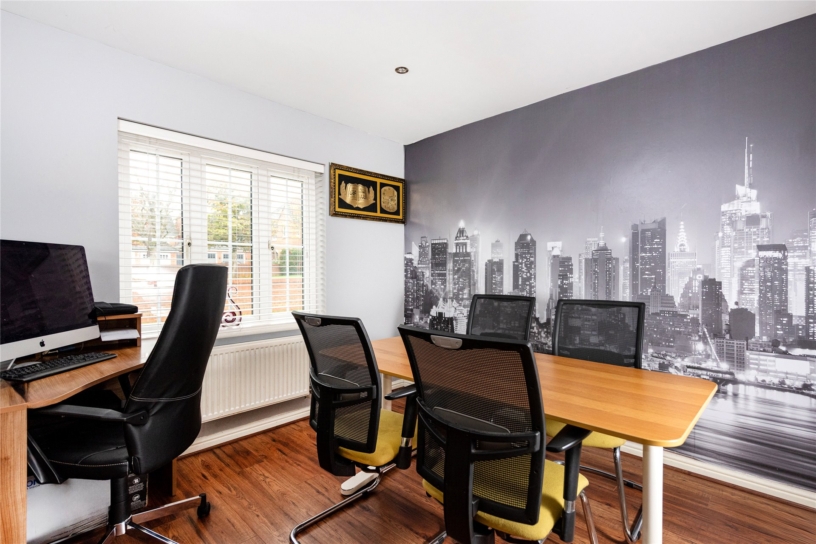 Guide price £550,000. The property has approximately 2,111 sq. ft. of accommodation which includes an entrance hall with stairs to the first floor, a cloakroom, and access to the office and the over 21 ft. sitting room which has a feature fireplace with a coal effect electric fire and glazed doors to the almost 30 ft. P-shaped conservatory which is currently used as a dining and family room. Also on the ground floor is the kitchen/breakfast room. On the first floor the landing area has an airing cupboard and access to the principal bedroom which has a dressing area with fitted wardrobes, and an en suite shower room. There are two further double bedrooms with built-in wardrobes, and a family bathroom. On the second floor are two additional double bedrooms and a shower room. The front of the property is laid to lawn with a central path to the front door, and a driveway to the side which provides parking for two cars ahead of the double garage. There is gated access to the rear.