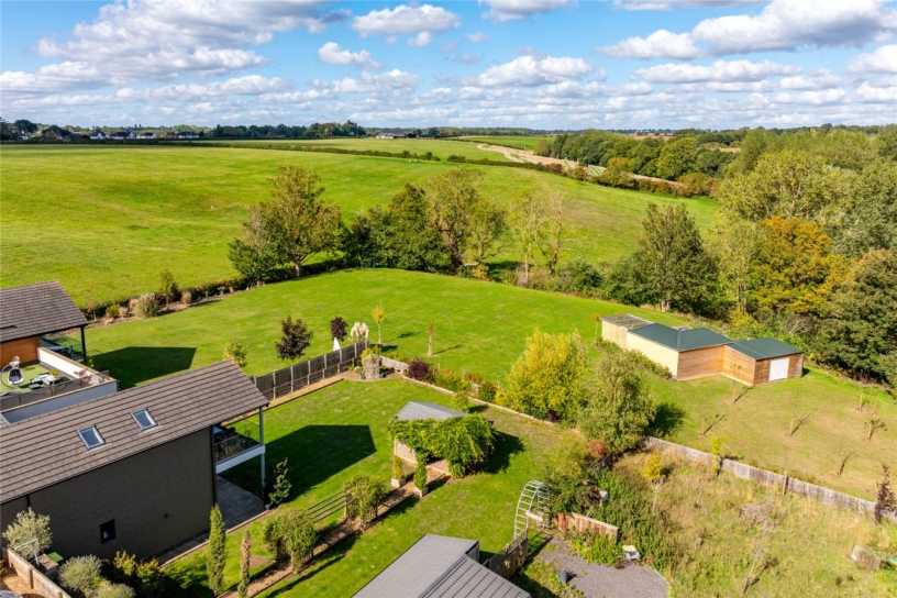 This unique brick and cladded property was built by the present owners in 2016 and has approximately 2,374 sq. ft. of accommodation set over two floors which includes a glazed timber porch and an entrance hall with access to the snug and two double bedrooms, both with a walk-in wardrobe and an en suite shower room. Also on the ground floor is a cloak/shower room, a utility room, and an open plan, dual aspect kitchen/dining/siting room with a vaulted ceiling and four skylights. Windows run the length of one wall, and bi-fold doors open to a balcony overlooking the garden. From the dining area, stairs with a glazed balustrade lead down to the lower ground floor where there is a principal bedroom suite with a bedroom, a dressing room, and a four piece en suite bathroom. Bedroom two is currently used as an office. Both rooms have bi-fold doors to the garden. There is underfloor heating throughout the property.