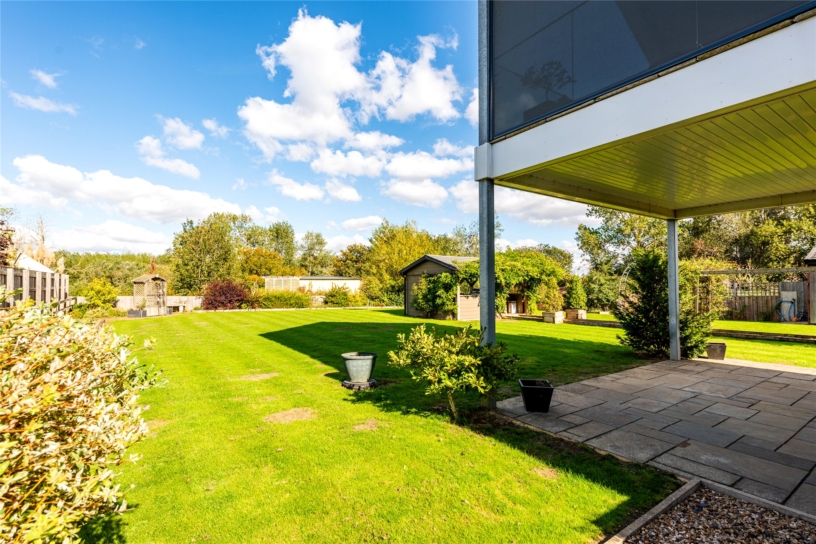 A modern individually designed four bedroom link detached property with a double garage, off street parking for several cars, and a enclosed gardens overlooking open countryside.