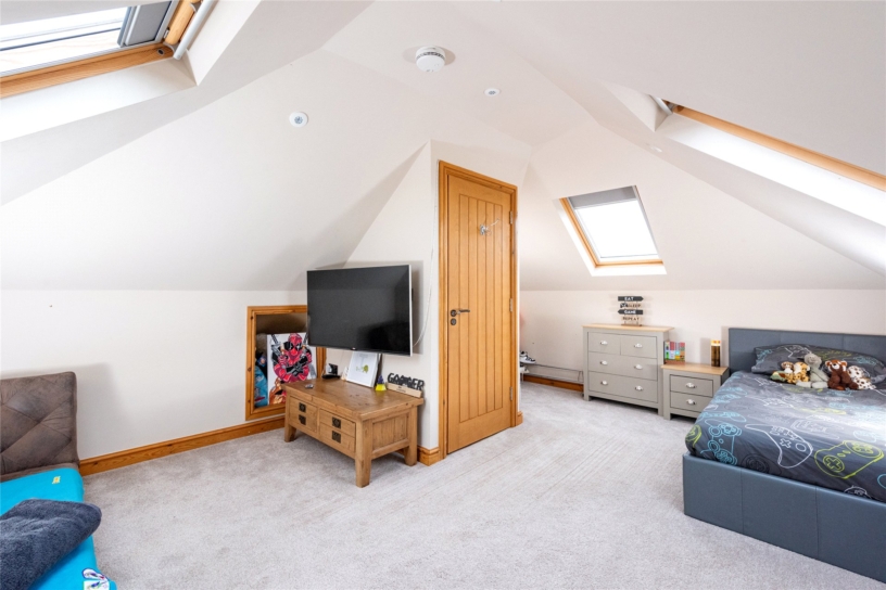 The property has approximately 2,067 sq. ft. of accommodation over three floors which includes an entrance hall which has a door to the rear, stairs to the first floor and access to the cloakroom and utility room. Glazed doors open to the sitting room which has a bay window to the front and a feature fireplace. Also on the ground floor there is a bedroom and the open plan kitchen/dining and adjoining sun room. On the first floor the principal bedroom has a fully fitted bespoke dressing room and a four piece en suite bathroom. There are two further bedrooms and a four piece family bathroom. Both bathrooms have a WC, washbasin, a roll top bath and a separate shower. Stairs lead up to the second floor where there is a triple aspect bedroom with a vaulted ceiling. The front of the property has a blocked paved driveway providing parking for four cars ahead of the garage. There is security lighting and an electric vehicle charger.