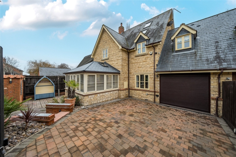 A modern, stone-built five bedroom semi-detached cottage with landscaped front and rear gardens, countryside views to the front aspect, secure driveway parking and an integral garage, situated in the village of Little Addington.