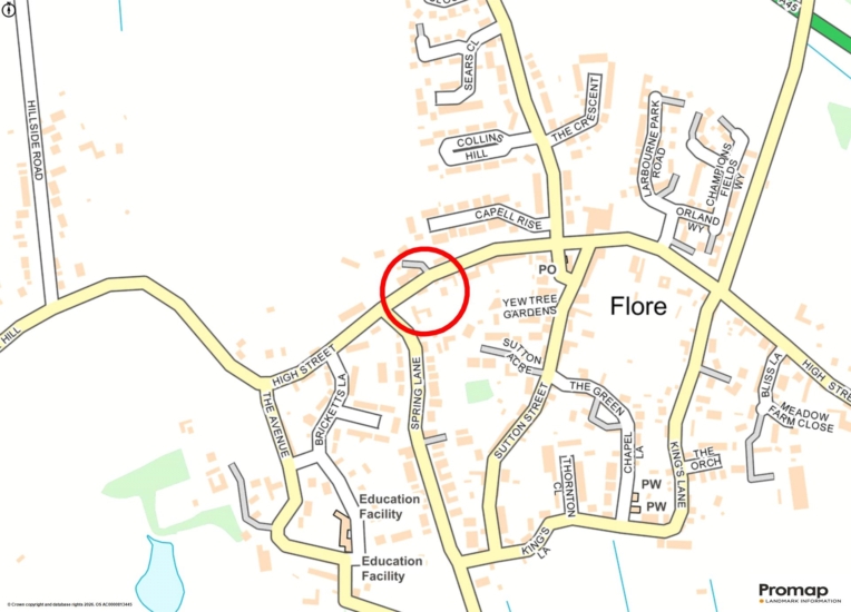 The recently bypassed village of Flore is situated approximately 8 miles to the west of Northampton and has amenities including a post office, newsagent, a zero waste eco shop and café, a primary school, parish church and a public house. Secondary school children progress to Campion School in Bugbrooke and private schools in the area include Northampton School for Girls, Northampton School for Boys, Spratton Hall, Quinton House and Rugby.