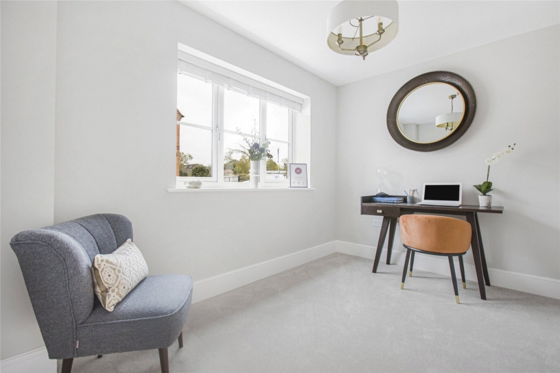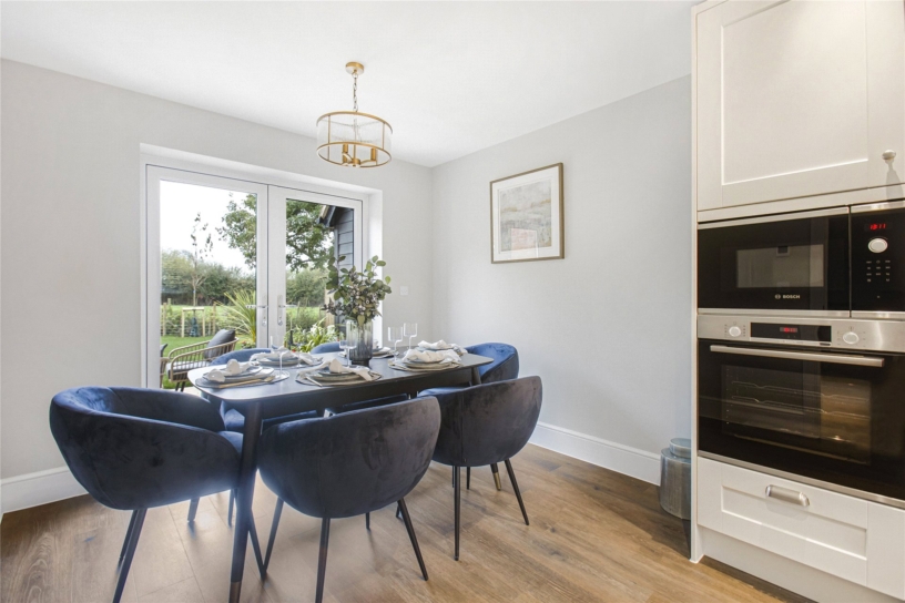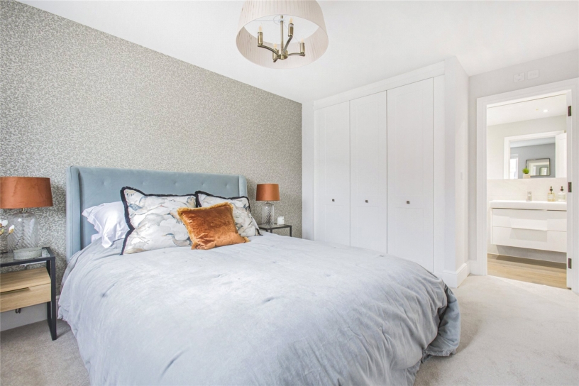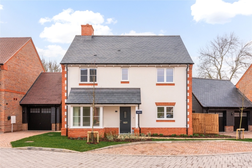 Plot 4, the Bladon is an energy efficient three bedroom detached home finished to a high specification, and includes an open plan kitchen/dining room with integrated appliances and French doors to the landscaped south west facing garden. There is a sitting room, also with French doors to the rear garden, a study, a contemporary cloakroom, and underfloor heating throughout the ground floor. Upstairs there are three double bedrooms. The bathroom and the en suite shower room to the principal bedroom are fitted with Laufen sanitary ware and Hansgrohe thermostatic showers. There are also bespoke fitted wardrobes by Hammonds in the principal bedroom. Outside there is a front garden as well as a garage with a Pod Point EV charging point and private driveway. The development also has allocated parking spaces for visitors. The enclosed rear garden is mainly laid to lawn.