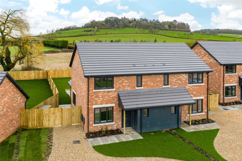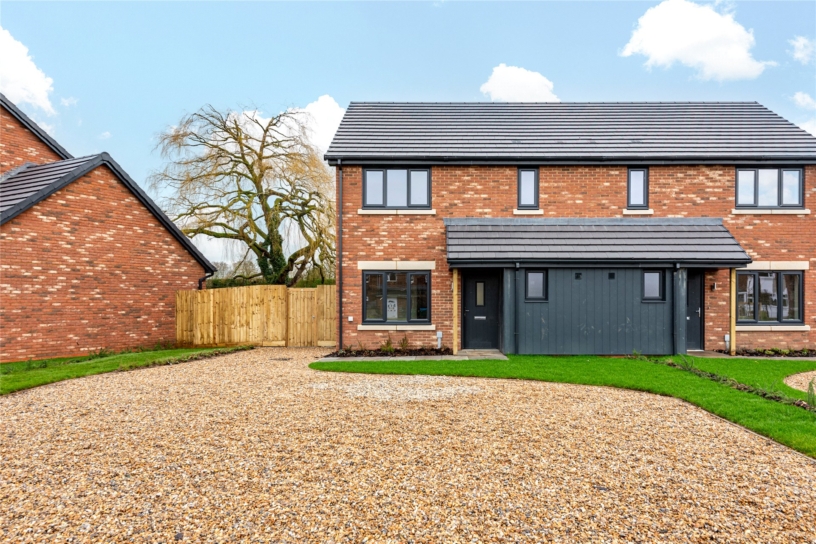 A new build, three bedroom semi-detached family home with large gravelled driveway parking and an enclosed rear garden backing onto open countryside in the Buckinghamshire village of Westcott.