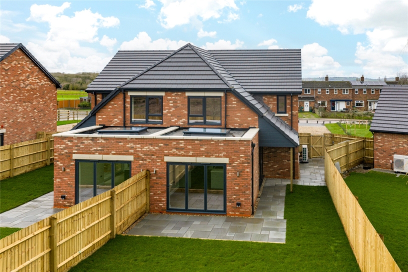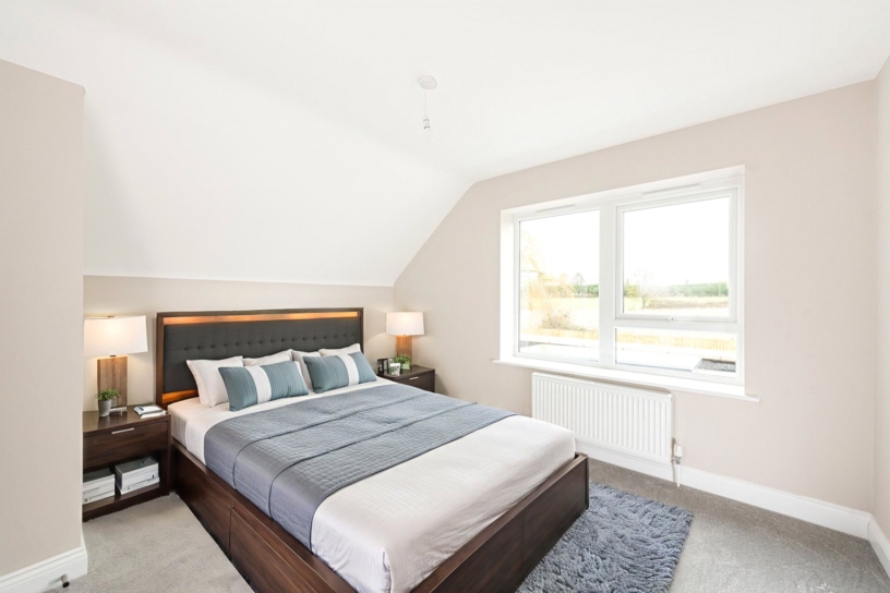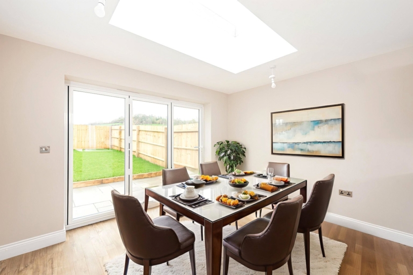 This property is in a development of six newly-built family homes, situated on the edge of a Buckinghamshire village in a position overlooking open country side. This property has approximately 1,261 sq. ft. of accommodation arranged over two floors. On the ground floor there is an entrance hall with a cloakroom, a staircase to the first floor with understairs storage and an additional cupboard. There are two separate reception rooms: a study/snug and a sitting room. At the rear of the property is a dual aspect, open plan, fully fitted kitchen/dining/family area with bi-folding doors to the rear garden. There is also an adjacent utility room. The house has an air source heat pump with underfloor heating on the ground floor. Outside, there is a large gravelled driveway, providing parking for two cars. The rear garden is enclosed by timber fencing, and is mainly laid to lawn with a paved patio, an outside tap and lighting.