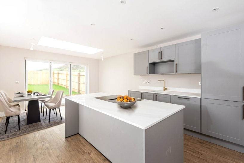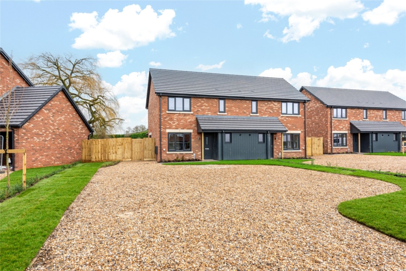 A new build, three bedroom semi-detached family home with large gravelled driveway parking and an enclosed rear garden backing onto open countryside in the Buckinghamshire village of Westcott.
