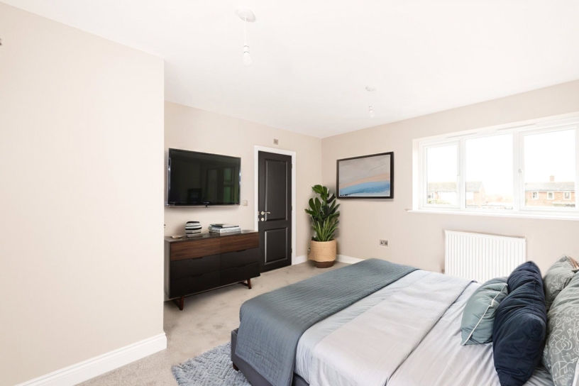 Leading off the first floor landing are three bedrooms. The principal bedroom has a three piece en suite shower room. Bedrooms two and three overlook the rear garden and there is a three piece family bathroom. Both bathrooms have Britton sanitaryware and brassware, with Porcelanosa tiling. There is a storage cupboard on the landing.