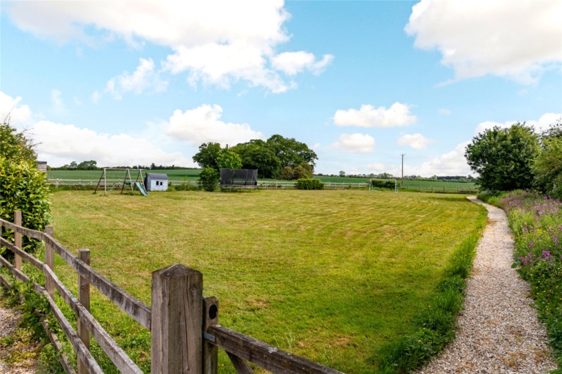 A stone built four bedroom barn conversion with an en suite bathroom, off street parking for four cars, and a 0.5 acres garden, in a rural location overlooking fields in the village of Sherington.