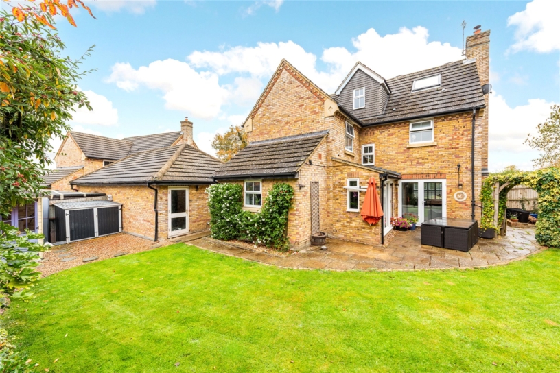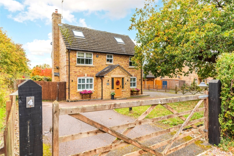 An extended six bedroom three storey detached house with an en suite, a double garage, and gated parking for six cars, situated with countryside views in the village of Turvey.