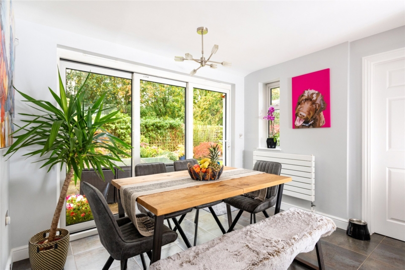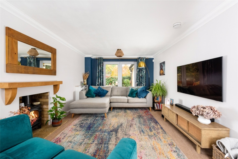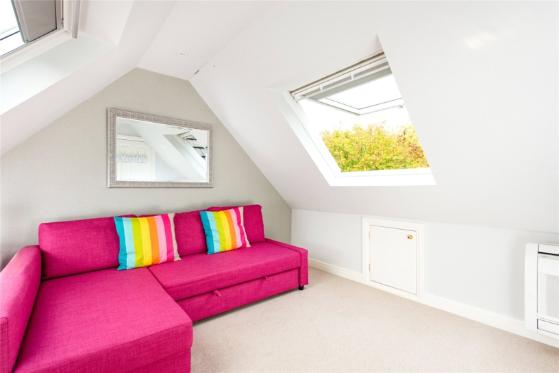 The 2,022 sq. ft. of versatile accommodation includes a dual aspect sitting room with a feature gas log burning effect stove, a window to the front with window shutters, and double doors to the rear garden, and an office/playroom with a window to the front with window shutters. Also on the ground floor is an open plan triple aspect kitchen/breakfast/dining room with an adjoining utility room which has space for appliances. The entrance hall has stairs to the first floor with an understairs storage cupboard, and a modern fitted cloakroom. On the first floor the principal bedroom has built-in wardrobes, and an en suite shower room. There are three further bedrooms, one of which is currently used as a dressing room, and a main bathroom. There are two further double bedrooms on the second floor, both with eaves storage and air conditioning.