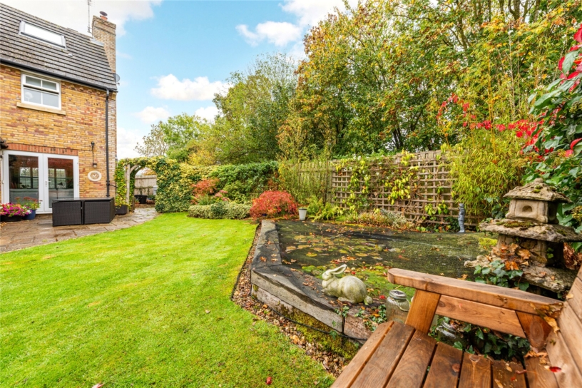 A wooden five bar gate opens to the front garden and driveway which provides off street parking for six cars leading to the double garage which has power and lighting. The enclosed rear garden is mainly laid to lawn with paved patio areas which continue to the side, a raised ornamental pond, shrubs and perennial borders, a summer house, a shed and bike store, and a door to the garage.
