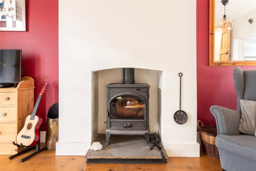 The accommodation combines character and modern fixtures and fittings, and includes a sitting room with a feature chimney breast with an inset log burner, an exposed ceiling beam, oak flooring, and stairs to the first floor. Also on the ground floor is the extended kitchen/dining room which has a door to the rear garden. On the first floor there is a principal double bedroom with stripped wooden floorboards, a single bedroom, and a bathroom which includes a panel bath with a shower, a pedestal wash basin, a WC, stripped floorboards, and a window to the rear.