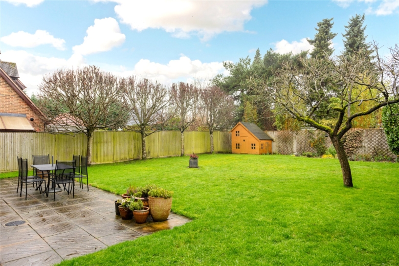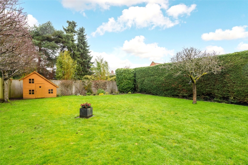 Newton House sits behind a shared gateway which leads to the block paved driveway providing off street parking for three cars, leading to the double garage which has twin up and over doors, power, and light. The front garden is mainly laid to lawn with pear trees, and hedge and shrub borders. The private west facing rear garden is enclosed by a combination of mature hedgerow and close boarded fencing with mature trees for screening. The paved patio can be accessed from the sitting and dining area giving a good flow through the internal and external space for modern family life and entertaining. The remainder of the garden is laid to lawn with flower beds, a plum tree, and a Wendy house.