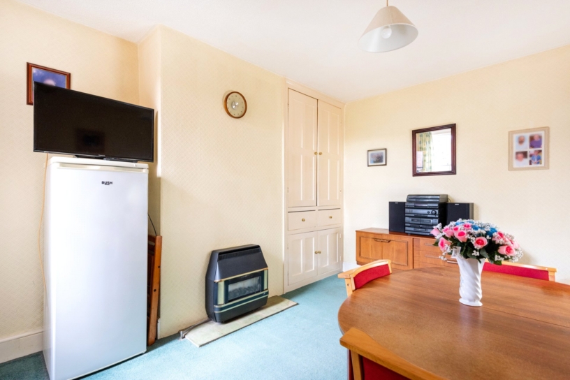 The accommodation includes a sitting room with a feature chimney breast with an electric fire, and a bay window to the front, and a dining room which also has a feature chimney breast with a gas fire, and original built-in storage cupboards in the chimney recess on one side. Also on the ground floor is an entrance hall with original tiles under the carpet, and stairs to the first floor, a fitted kitchen, a bathroom, and a separate WC. The first floor landing has a built-in double cupboard and access to a principal bedroom with a built-in cupboard, and two further bedrooms. The property has gas to radiator heating.