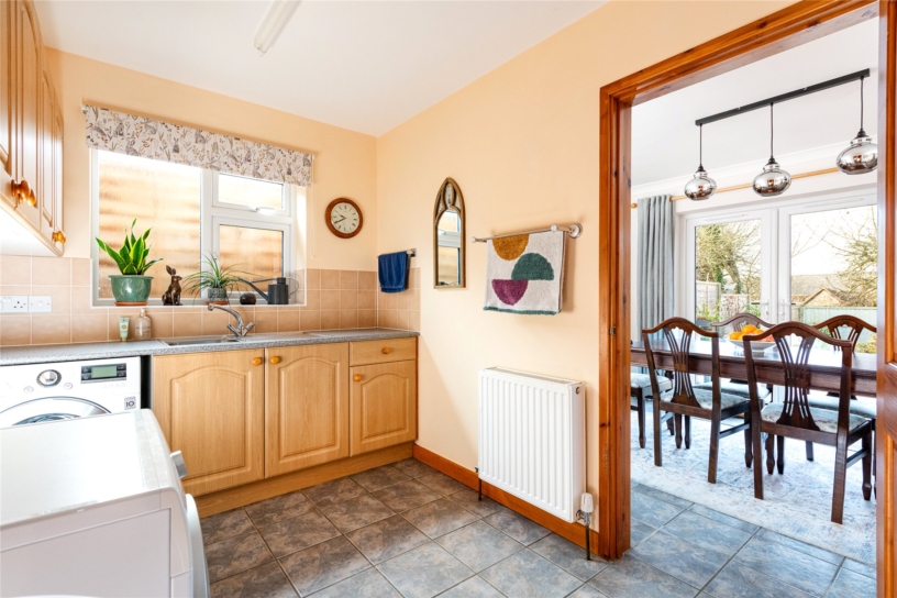 The accommodation includes an entrance hall with a built-in cloaks’ cupboard and access to most of the other accommodation. The sitting room has a feature fireplace with an inset electric fire, laminate wood flooring, and double doors to the triple aspect conservatory which has an all season glass roof, tiled flooring, and double doors to the garden. The fitted kitchen/dining room has double doors to the garden, and a door to a utility/shower room which has fitted units, spaces for appliances, and a corner shower cubicle. There is also a study/boot room. There are two double bedrooms, one with a range of freestanding wardrobes, and a fully tiled bathroom which has a freestanding bath, a pedestal wash basin, and a WC. The property has double glazing, and gas to radiator heating.